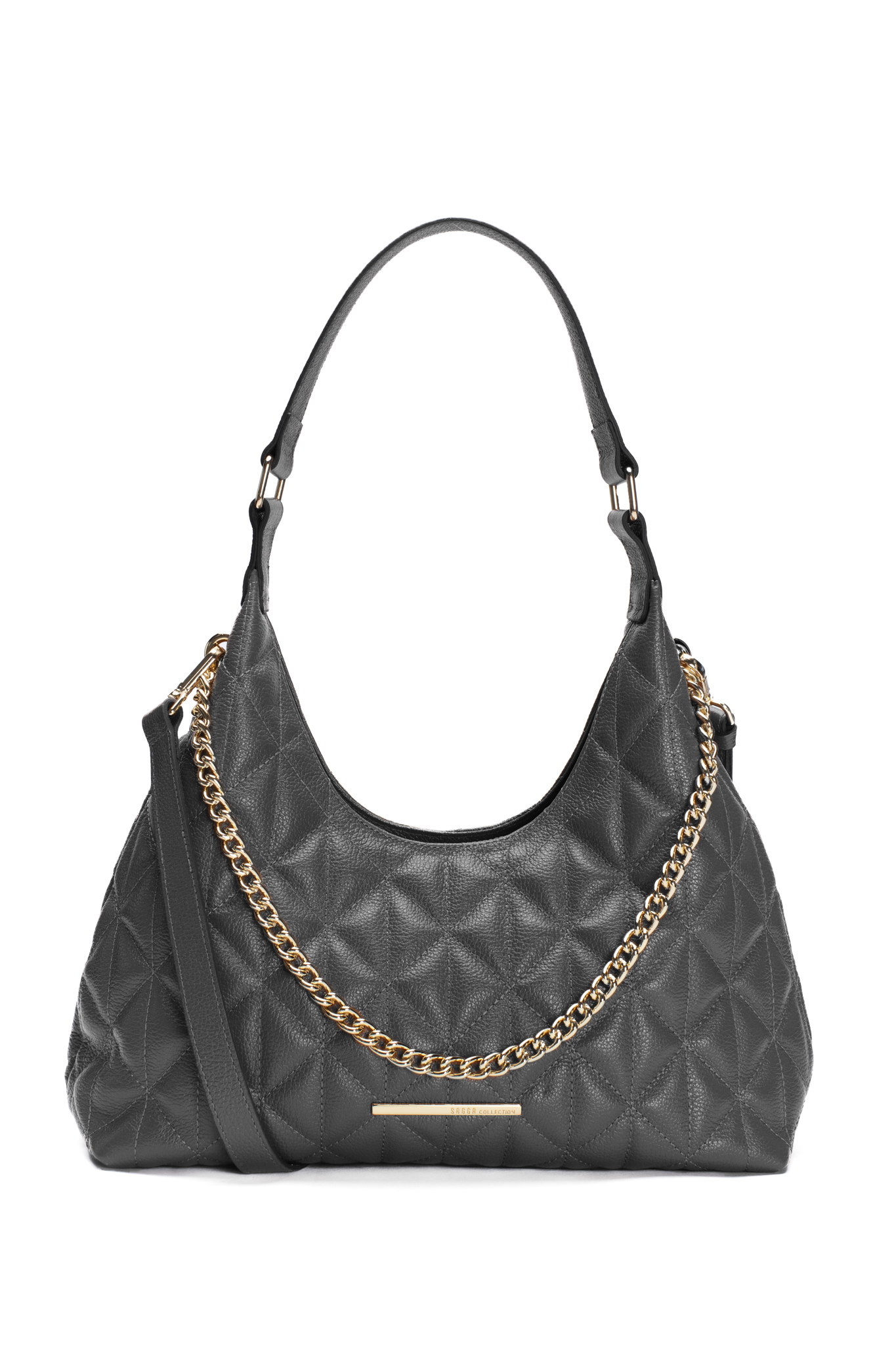 Bolsa criada e produzida no Brasil em couro legítimo. O modelo possui alça de corrente, alça longa e alça de couro para ombro. A presença da corrente metalica dourada mantém o glamour, reforçando a estética do minimalismo refinado, tendência que une funcionalidade e elegância com maestria que só a Sagga tem.
