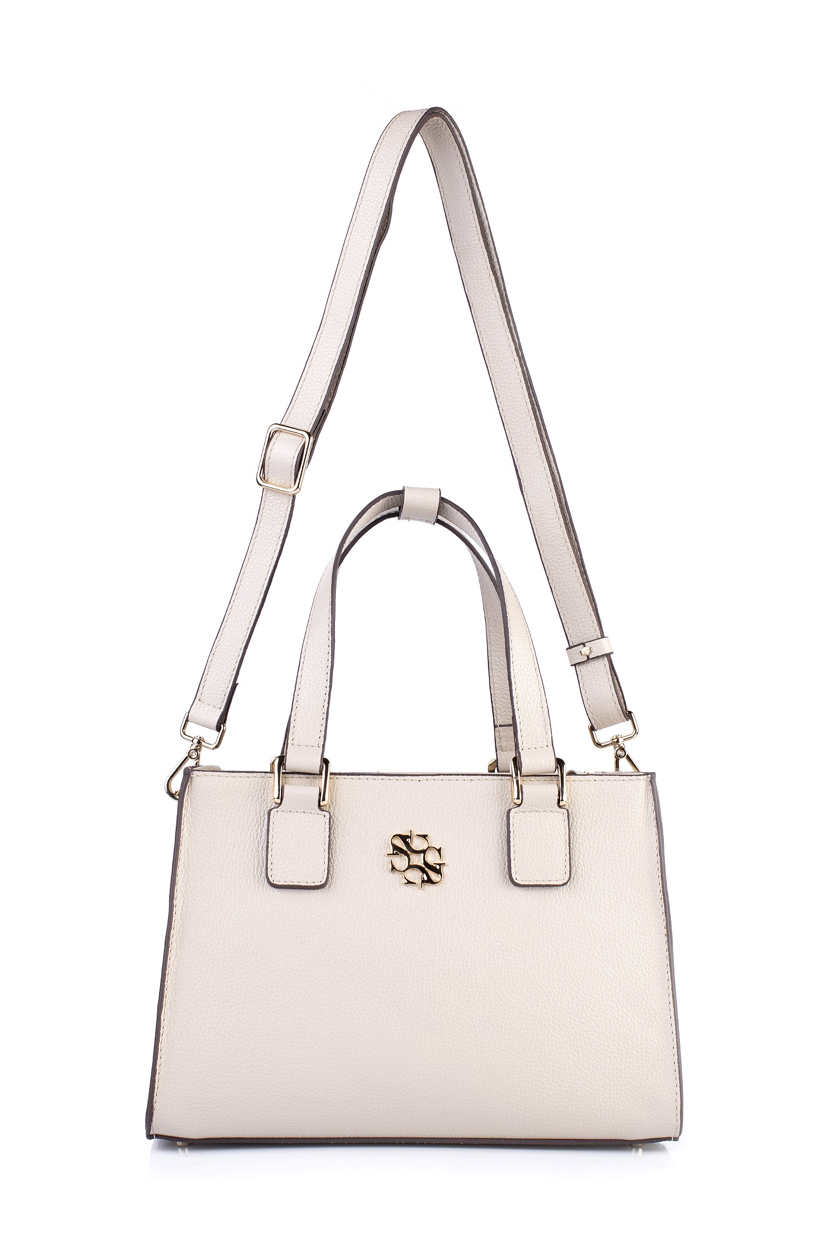 BOLSA COURO MÉDIA ESTRUTURADA BEGE AVEIA CÓD-497