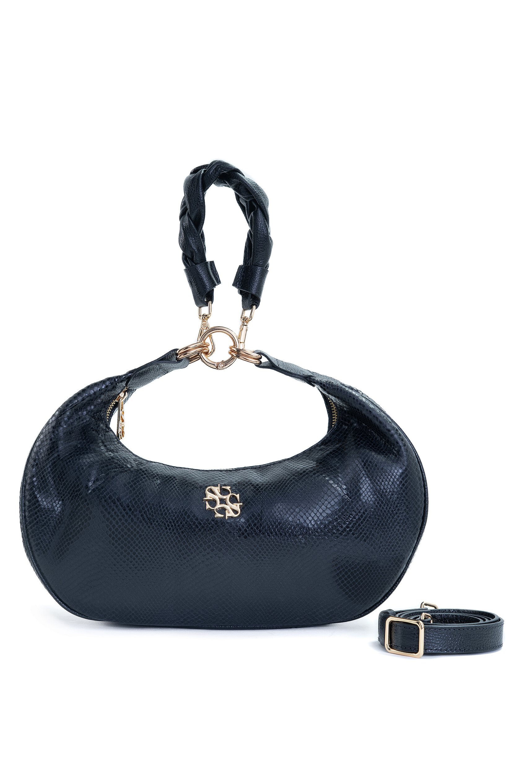 BOLSA COURO MEIA LUA MACIA GRANDE SNAKE PRETO CÓD-663