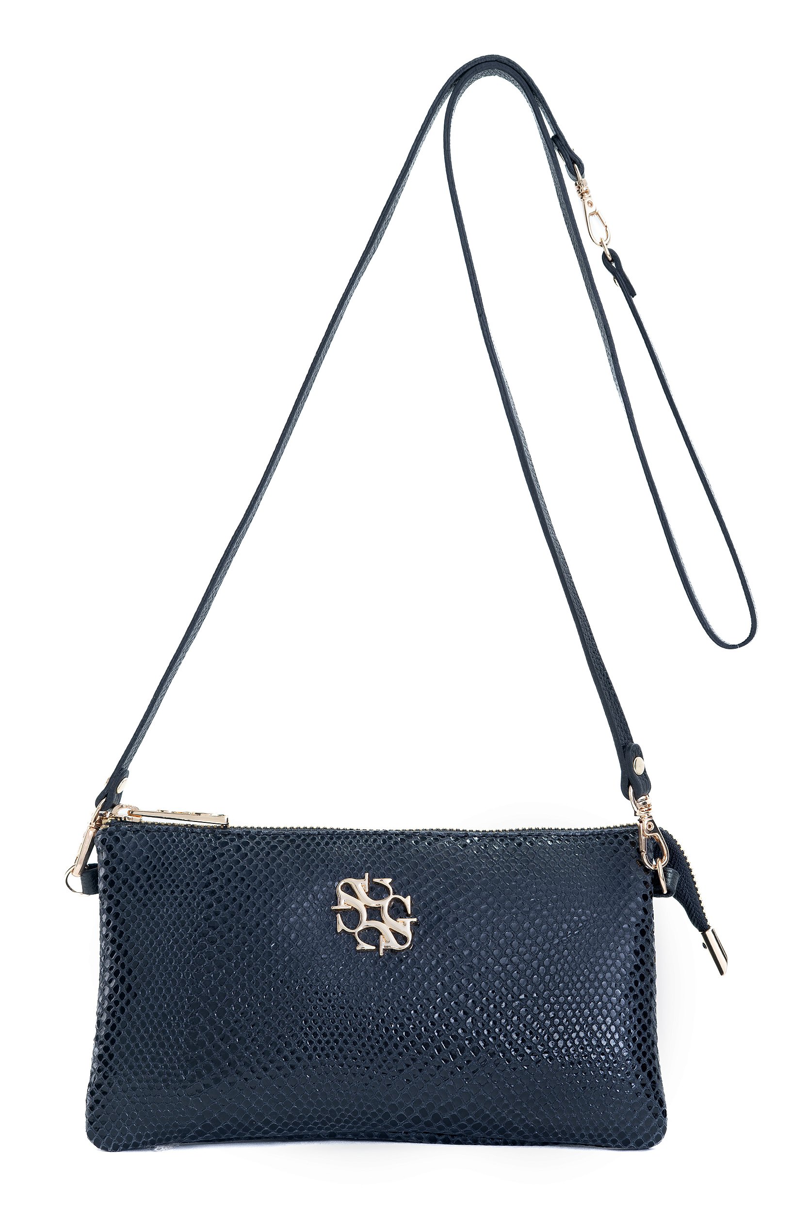 BOLSA COURO PEQUENA COM DIVISÓRIAS SNAKE PRETO CÓD-5472