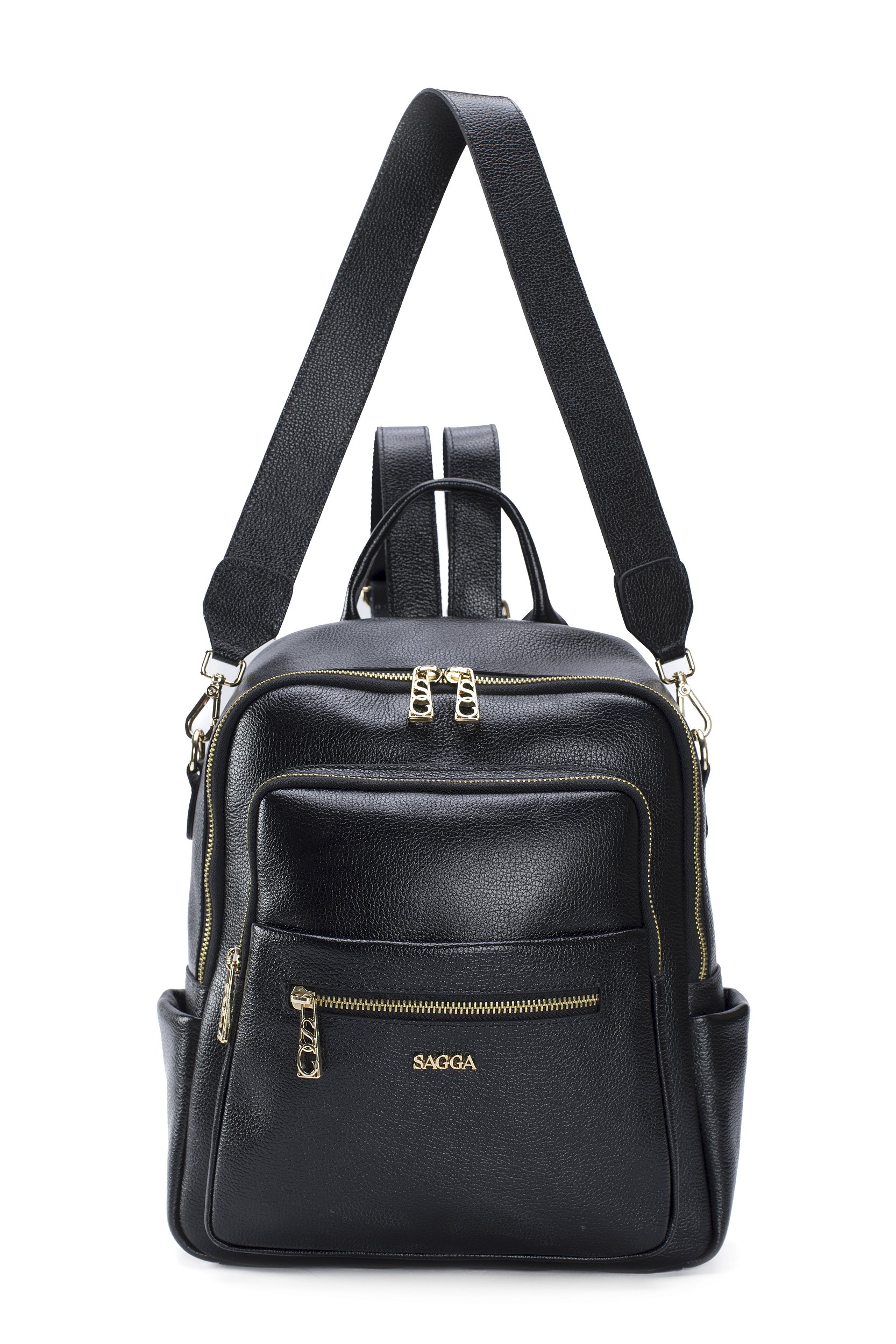 Bolso frontal com bolso extra com zíper, bolso traseiro e interno com zíper. Alça de ombro para usar como bolsa também. Alça de ombro em couro 66cm removível que se transforma em bolsa. Alça de ombros em couro e correia personalizada SG. Forro de gorgurão bege, porta celular em tecido e metais de qualidade.