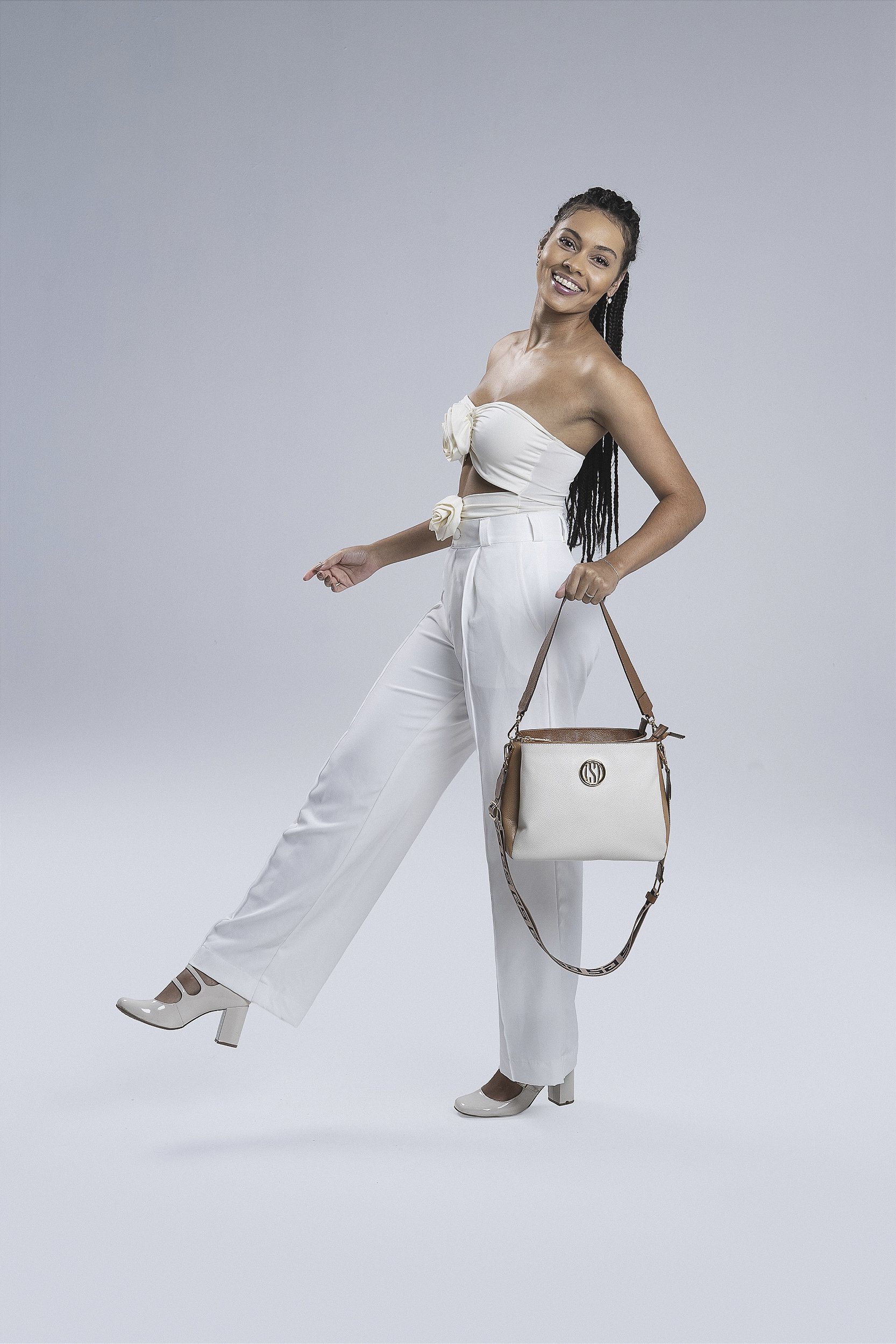 Bolsa criada e produzida no Brasil em couro legítimo. A bolsa surge em um tom neutro expressando as tendências da estação.